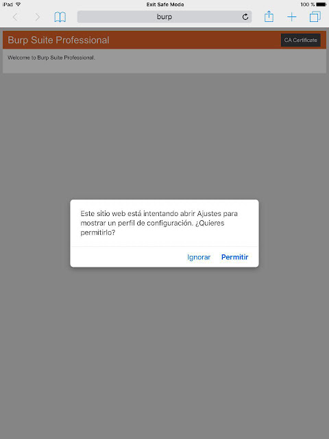 Ahora entraremos desde el termnal iOS al sitio web: "http://burp", configurando previamente el proxy de Burp: